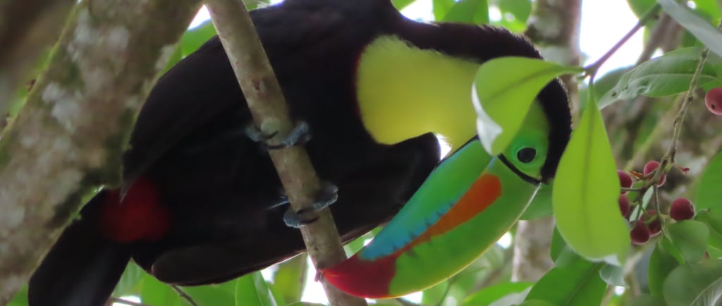 The hiking trail winds through the biodiverse rainforest, offering hikers the chance to see a wide variety of plant and animal species. Along the way, visitors can spot howler monkeys, sloths, toucans, and many other types of birds and animals. It's also possible to see colourful butterflies fluttering around the flowers and plants that line the trail.