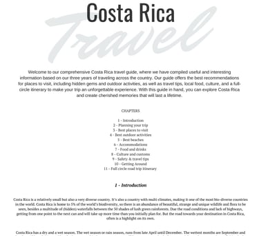 Costa Rica Travel Guide Printout